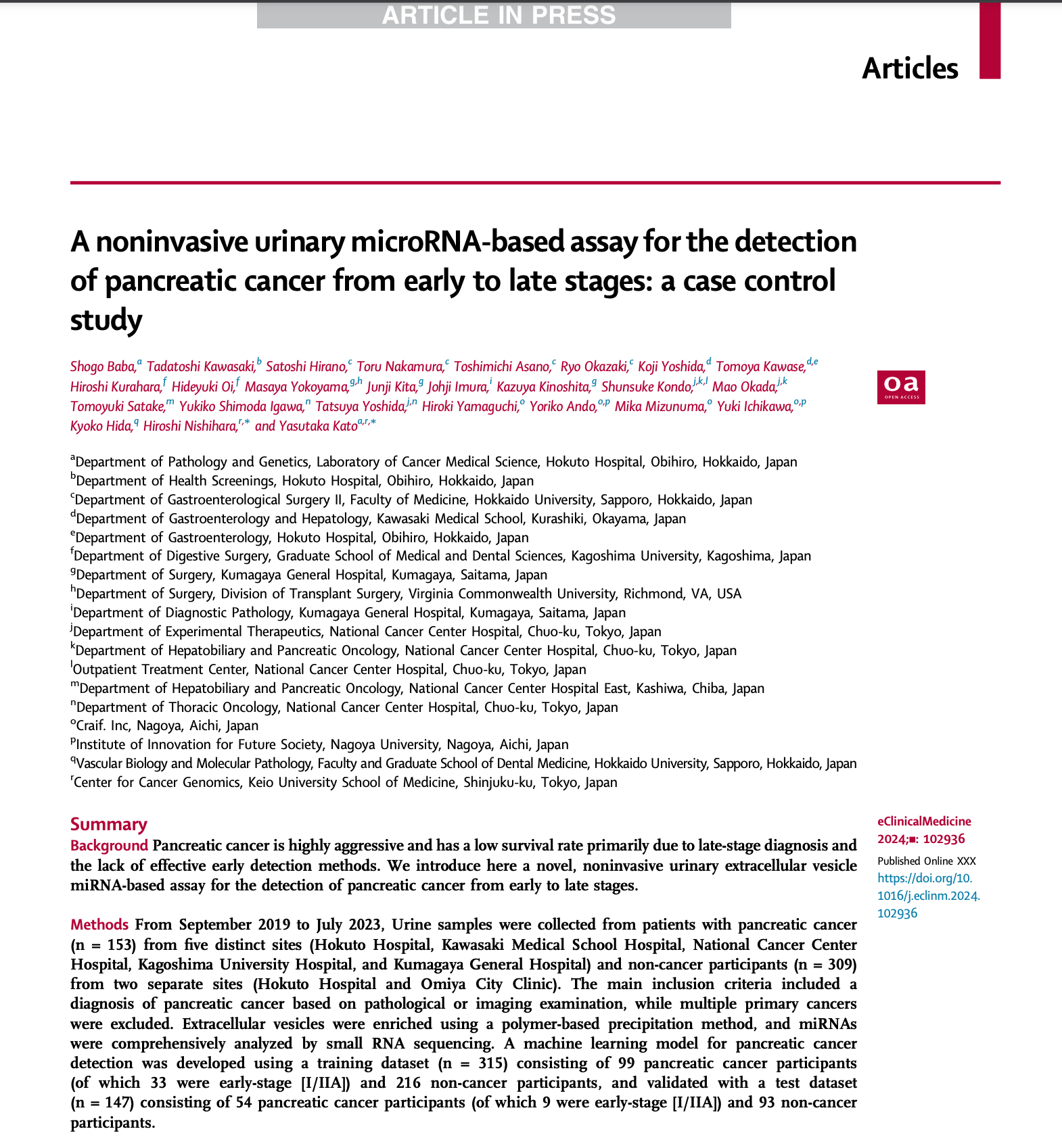 そんな中、「わずか3mLの尿で早期ステージのすい臓がんを高精度で発見」できる可能性が、